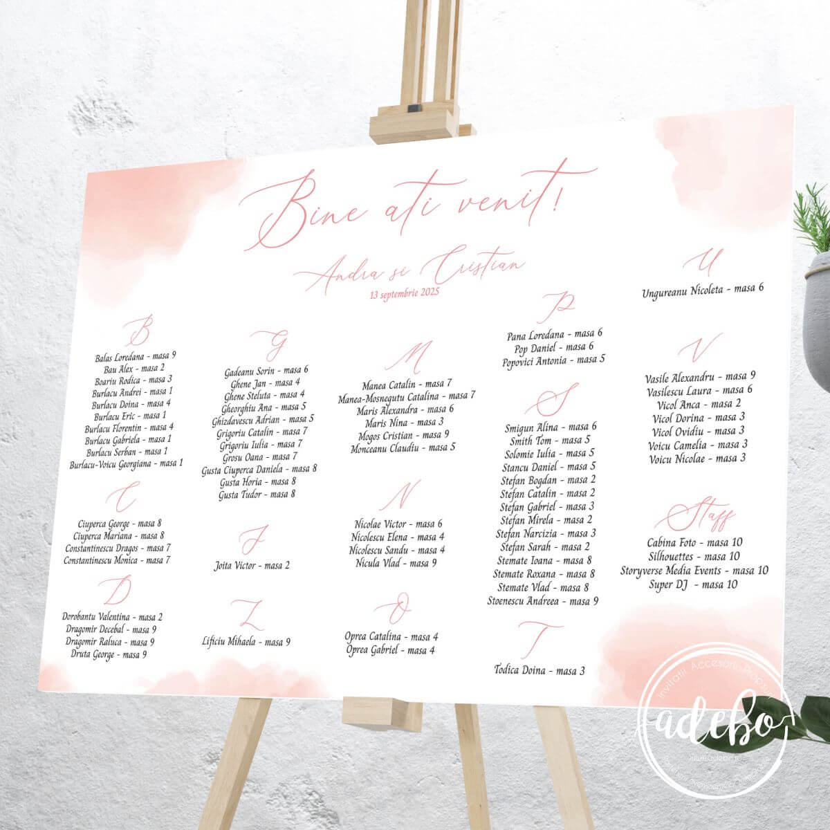 – invitatii ii puteti aranja alfabetic sau pe mese