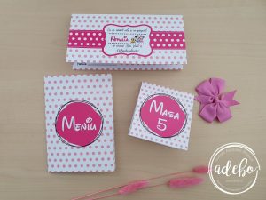 • Putem realiza pachet intreg de accesorii cu aceeasi tematica: meniuri, plicuri de bani, numere de masa, lista invitati.