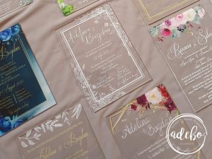 Desigur, dispunem de o gama variata de plicuri colorate pentru invitatiile de nunta cat si pentru invitatiile realizate pe plexiglas sau acril, dar si mai interesant este ca avem plicuri realizate manual ce se adapteaza complet modelului. Gama noastra de plicuri realizate manual poate fi accesata aici: PLICURI MANUALE insa trebuie sa amintim faptul ca, calitatea si diversitatea culorilor primeaza in fata plicurilor colorate obisnuite din comert.