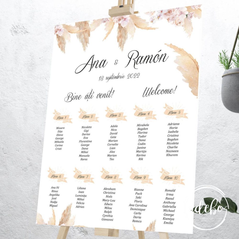 Cateva informatii despre acest model de Lista invitati pampas si flori pastelate:
