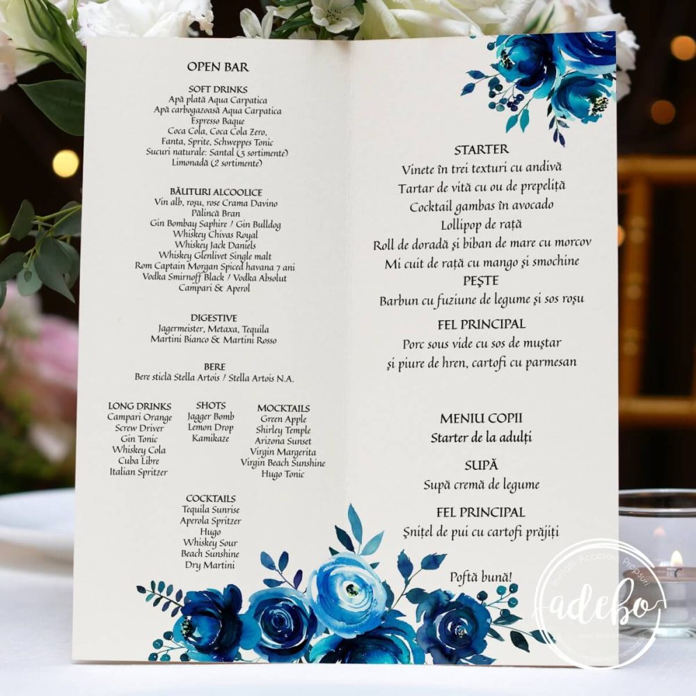 Cateva informatii despre acest model de Meniu botez – albastru regal: