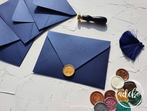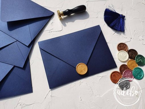 Gama variata de culori disponibila pentru plicurile manuale, gramajele sunt cuprinse intre 120 gr. si 300 gr., clapeta este in forma de V fara lipici pe interior, si recomandam cu caldura inchiderea acestora cu sigiliu de ceara realizat manual. Dispunem de o gama variata de modele pentru sigilii de ceara cat si culori. Pe baza de comanda realizam sigilii personalizate conform cerintelor.